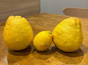 植木職人をしている叔父が、お施主さんのお庭に成っていたものをくれたのですが、私も最初見てびっくり!「レモン!?うそやぁ」と言うてました。調べてみると、「ポンデローザ」という品種で、普通のレモンの4~5倍の重さ、大きさ。